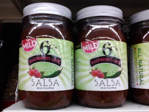 Our Mild salsa on the shelf.